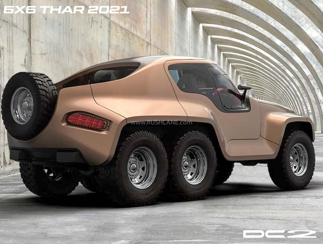 However, if you ask folks at India’s leading car customization company DC2 Design, they might tell you that there’s always scope to make things better. As an example, DC2 Design team has come up with 6×6 version of Thar. It is to note that this is not a mere concept created for publicity. Thar 6×6 can be in your garage, but it won’t be cheap.